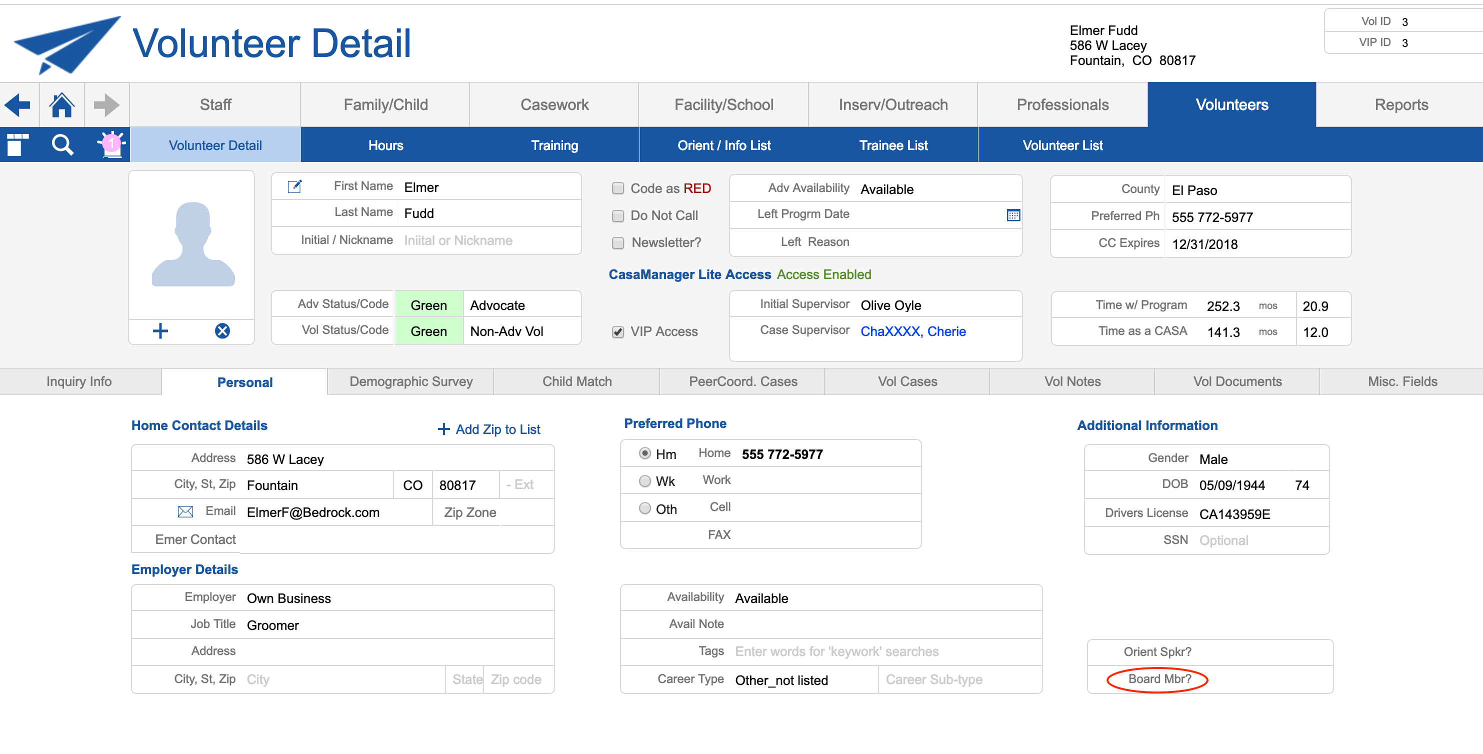 1. Volunteers>Volunteer Detail>Personal>Board Mbr?