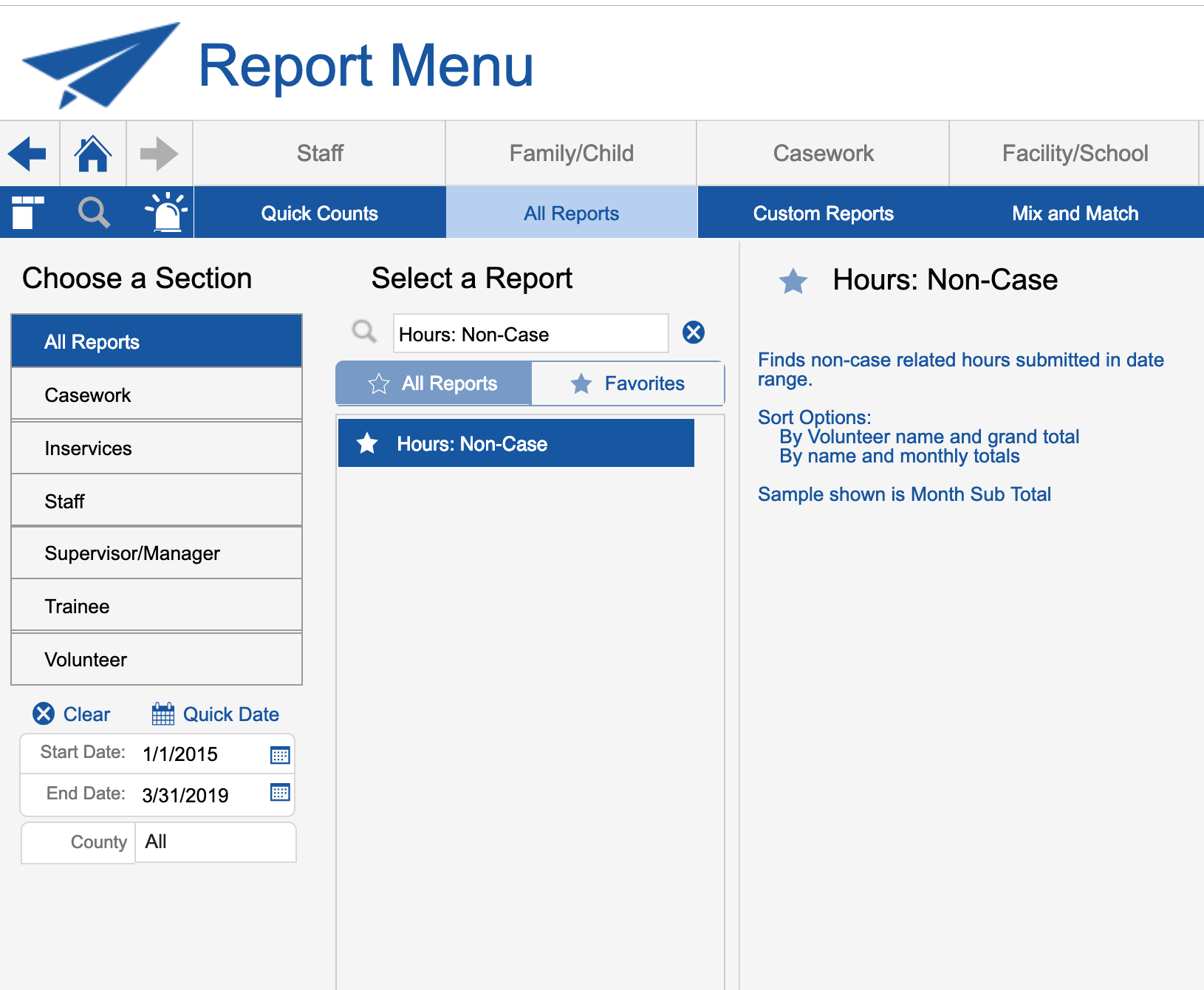 Report for this is: Hours: Non-Case (You must enter a date range).
