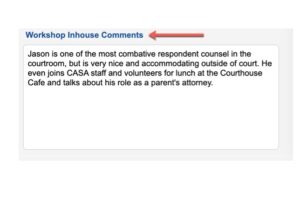 For years, we have had a text box there for Workshop In-house Comments on the bottom left of the screen. The watermark reads, “Type your rating and/or comments about the workshop”.
